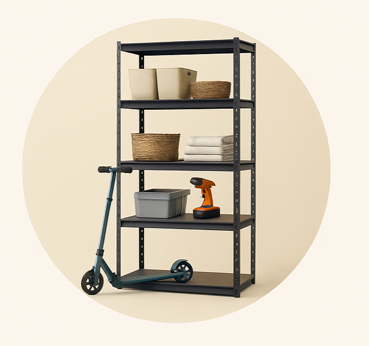 Heavy Duty 5-Tier Metal Slot Shelf – 3FT Wide Adjustable Boltless Storage Rack, 330 lb per Shelf (Single or 2-Pack)