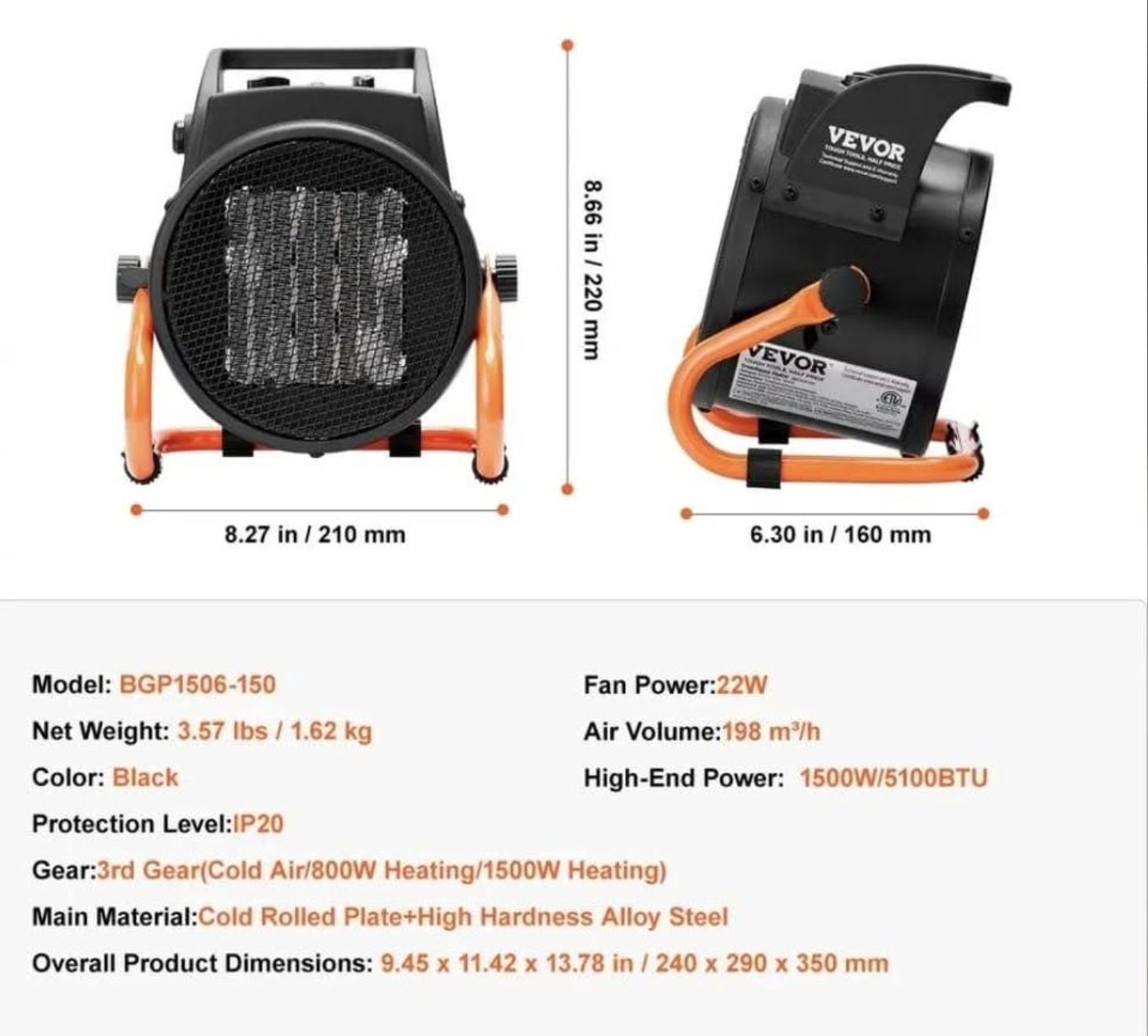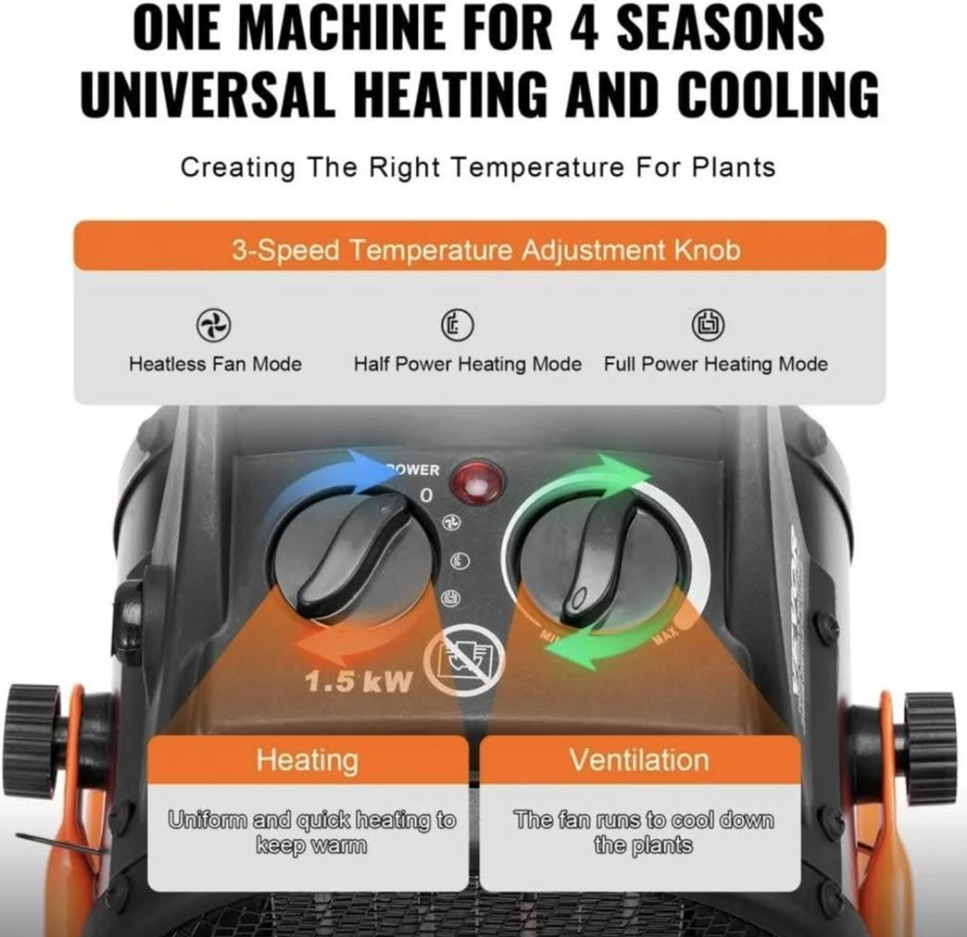 • Powerful 1500W Heating Output – Quickly warms garages, workshops, warehouses, basements, and small commercial spaces
