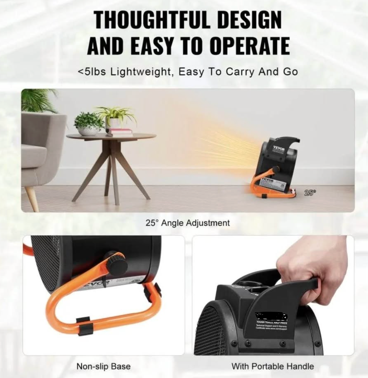 • Portable & Compact – Built-in carry handle for easy transport between rooms or job sites